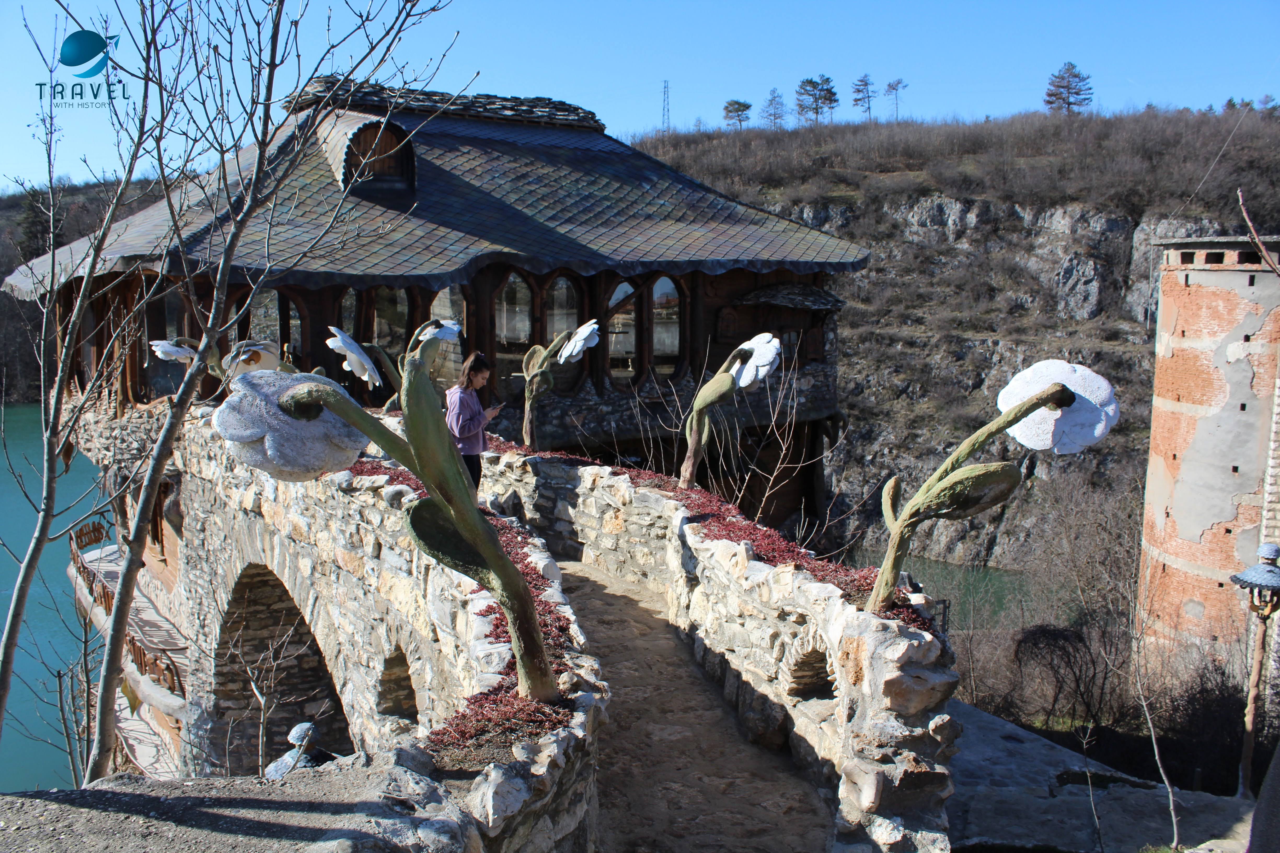 „Имало едно време“, нямам идея как е изглеждало това място преди години, но сега се изгубихме в една фантастична вселена, сред омагьосани гъби, сърцевидни лехи, лебеди и странна малка плаваща в езерото къщичка. За момент дори си представих как от нея излитат малки феи. О, сигурно и вие сте я виждали! Може би е най-споделяният кадър в Инстаграм. И тъкмо решихме, че вече няма какво да ни учуди и погледите ни се спряха на красиви каменни цветя, разцъфнали на мост към огромна и още по-причудлива къща.