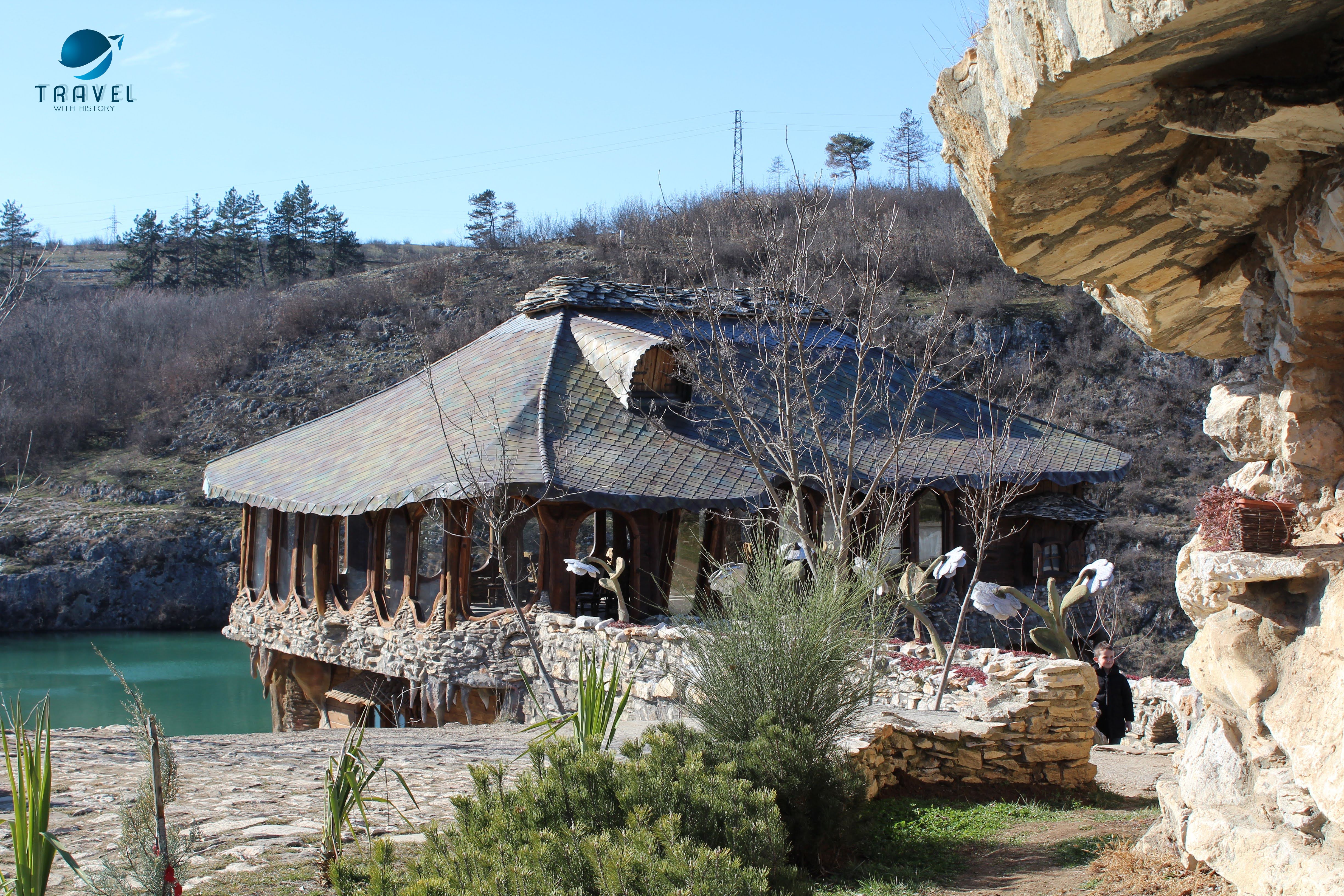Ако изкривеният покрив, каменната фасада, нереалистичното стълбище и прозорците със странна форма сами по себе си не направиха тази постройка да изглежда като излязла направо от платно на Салвадор Дали, то тогава малкото езерце със сигурност завършва картината.