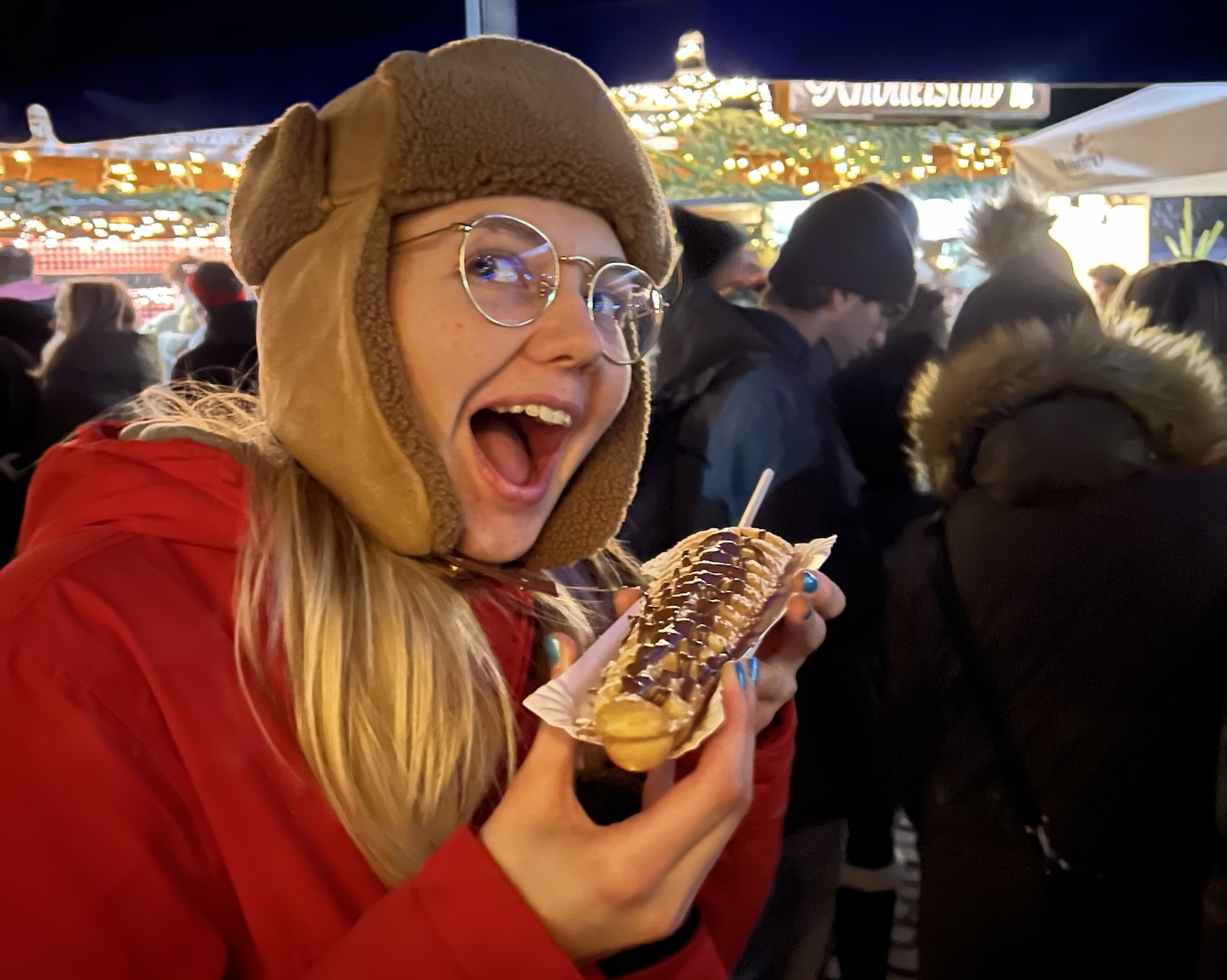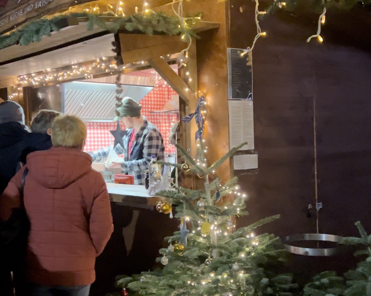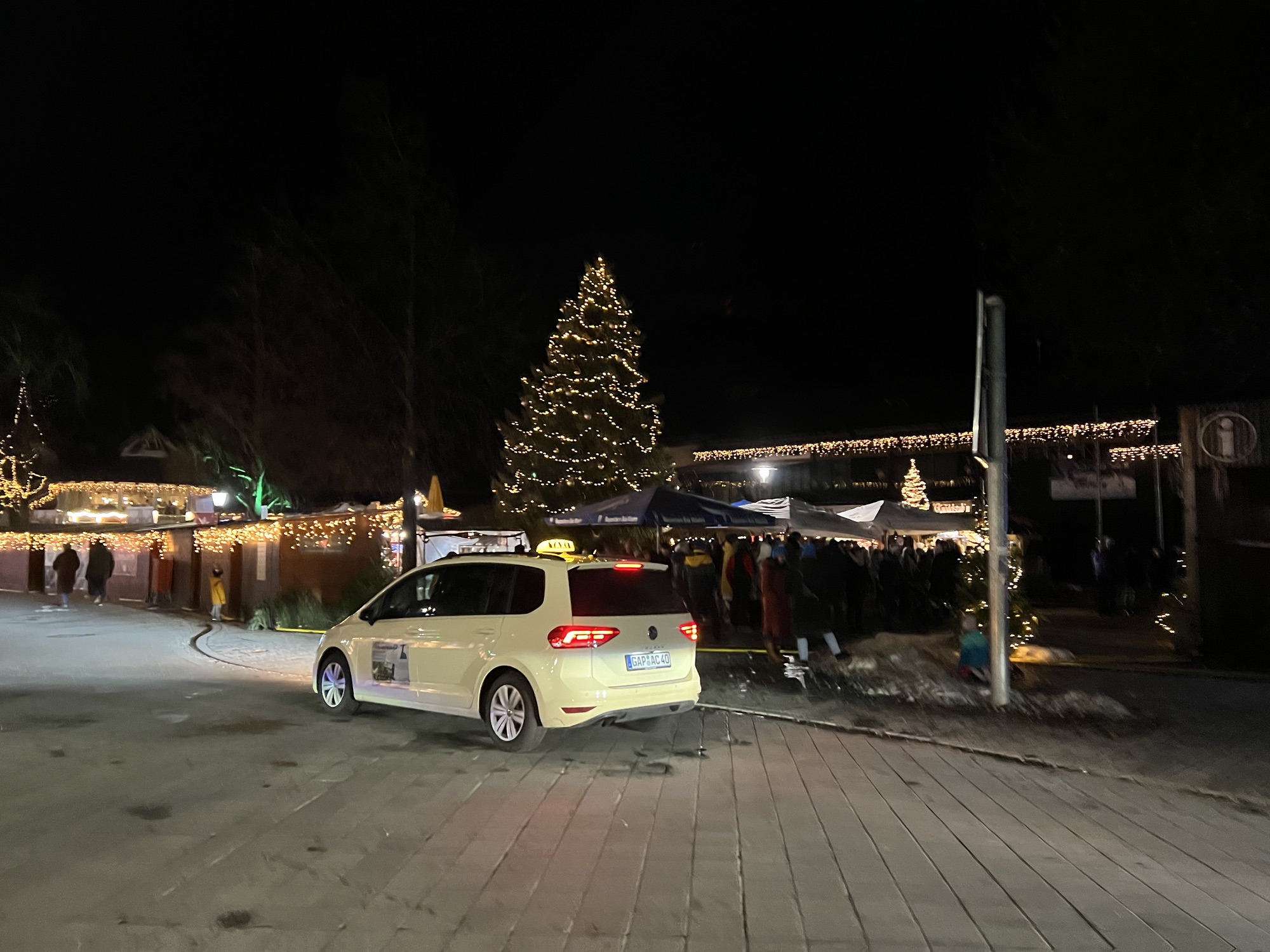 Попаднахме в автентична алпийска атмосфера, където Коледният сезон не просто се празнува, а се живее. Сияещият център беше пълен с весели хора, светещи щандове и различни аромати, галещи вкусовите ни рецептори. Предлагаше се почти всичко – от ръчно изплетени шапки, пуловери и шалове до Коледни играчки и традиционни конфитюри, мед и сладки. Всеки щанд предлагаше нещо уникално, докато не се озовахме в тази част, от която ароматите караха стомасите ни да звучат като симфония на Рихард Щраус. Тук кулинарните изкушения далеч надхвърлиха обичайния избор от печени кестени, греяно вино и пунш. Попаднахме в свят на вурстчета, фондю от швейцарски сирена, ароматни печени картофи, зимни супи и елхи от палачинки. Както може би се досещате, опитахме от всичко, което успяхме да поемем. Насладихме се на хубава музика от местната група Garmisch край коледната елха и заредени с незабравими спомени и преживявания, се качихме на едно такси и поехме обратно към кемп стопа.