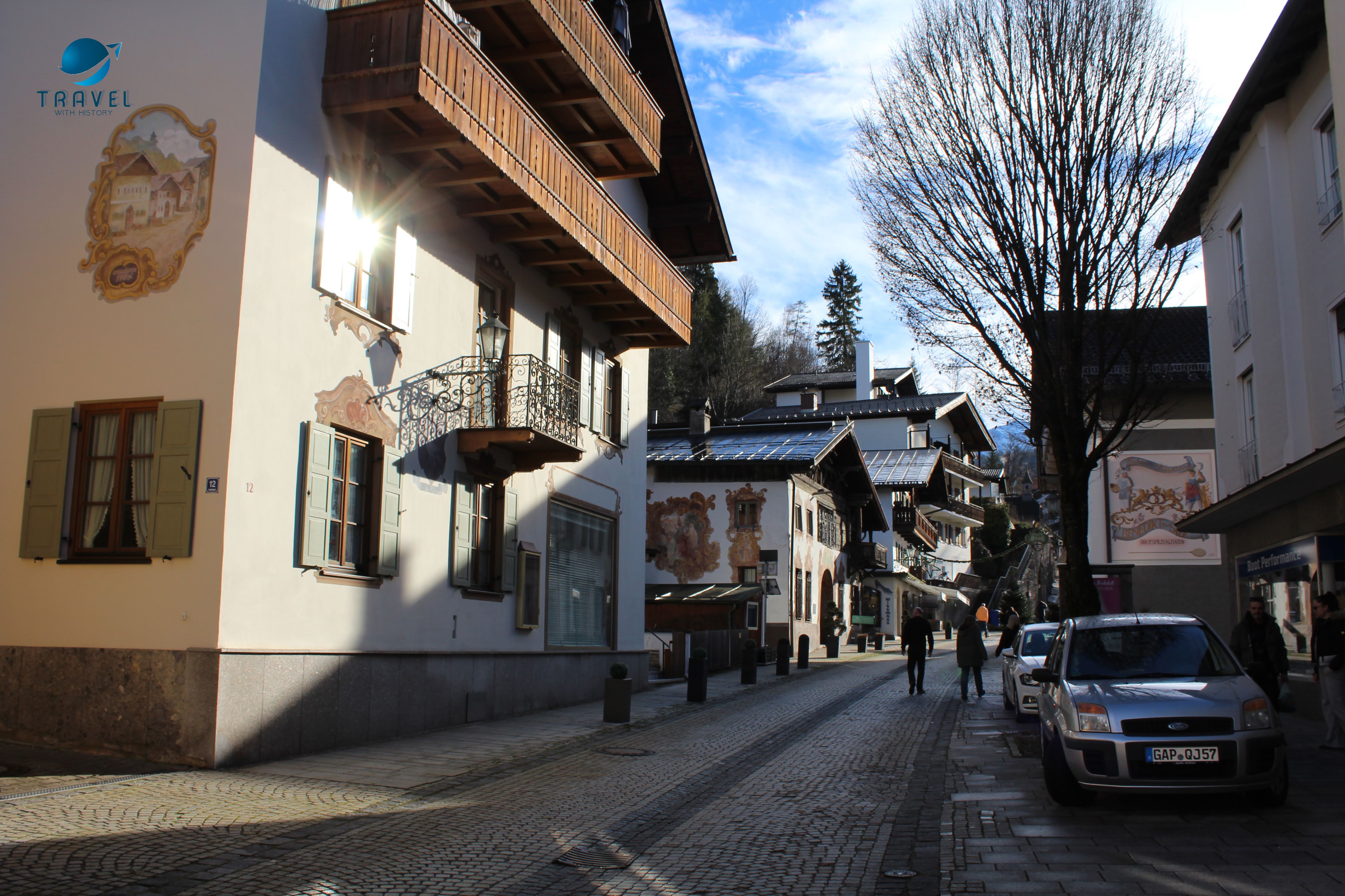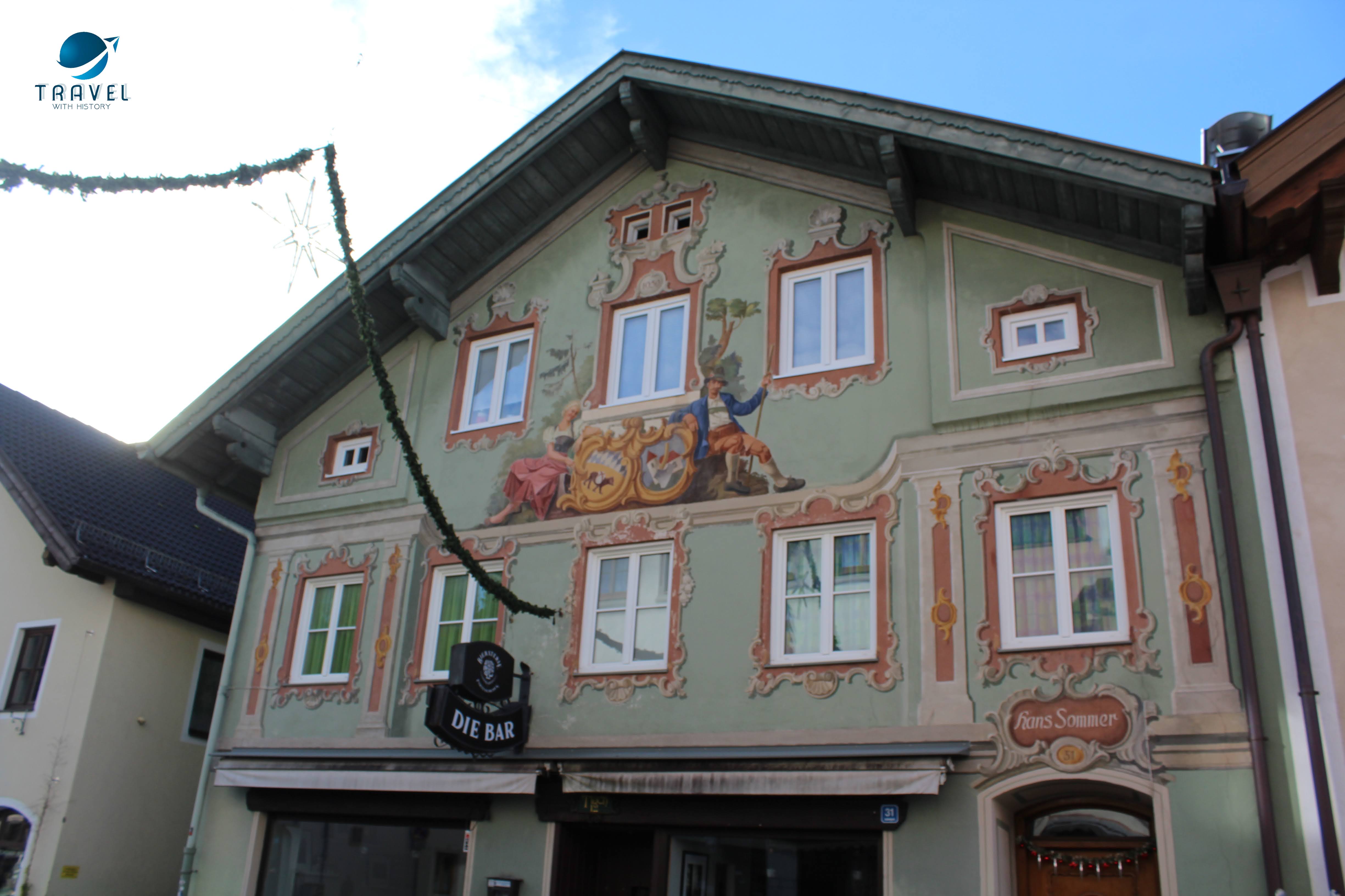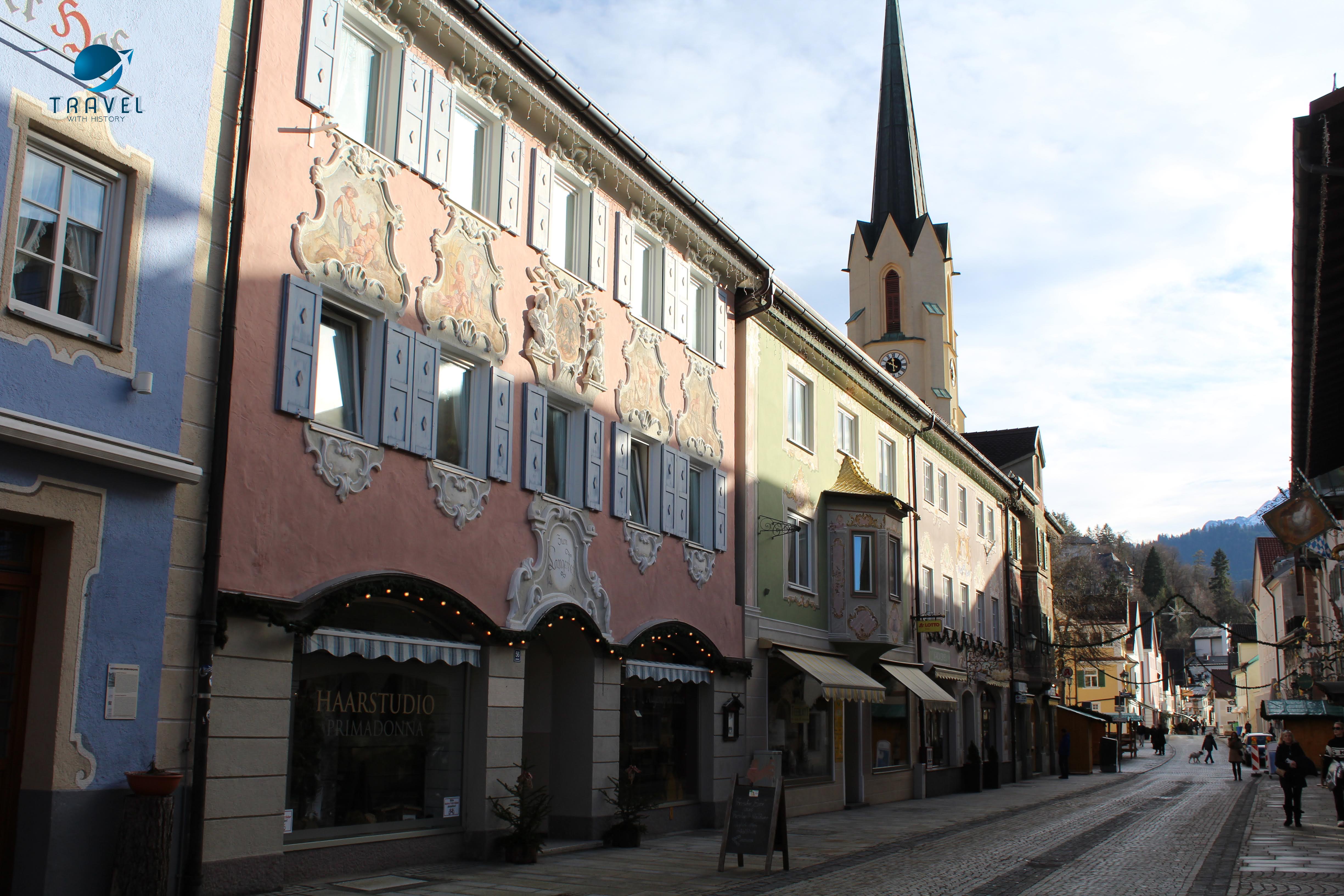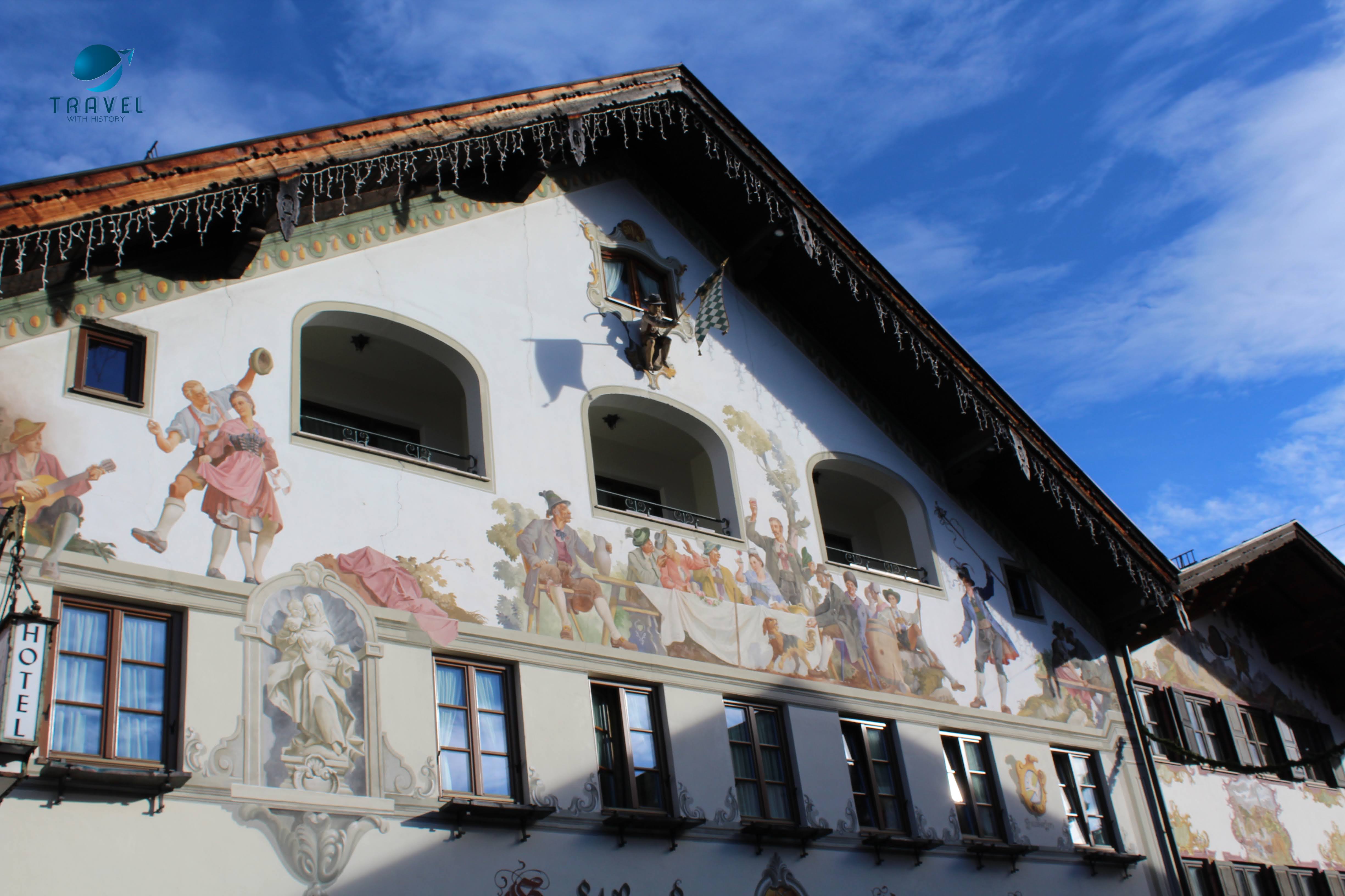 Старият град Партенкирхен изпълни всички наши немски фантазии. Живописните къщи показват стенописи по фасадите си, типични за района, които разказват интересни истории и съживяват миналото в контраст с модерните сгради на Гармиш, които видяхме първата вечер. Така наречените „Lüftlmalereien“ (дори не мога да го произнеса), са ранна баварска версия на уличното изкуство и всички сгради са пищно украсени с тях. Всяка е изобразена с някакво историческо или религиозно събитие или животни. Фасадната живопис произхожда от Италия, но цветните истории по стените на къщите се смятат за типичен израз на стария баварски характер. Популярен театър в рисувана форма, така да се каже. Опитайте се да „прочетете“ германската история на някои от изображенията.