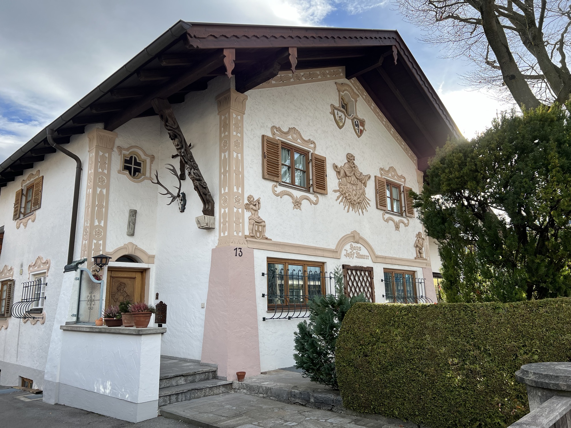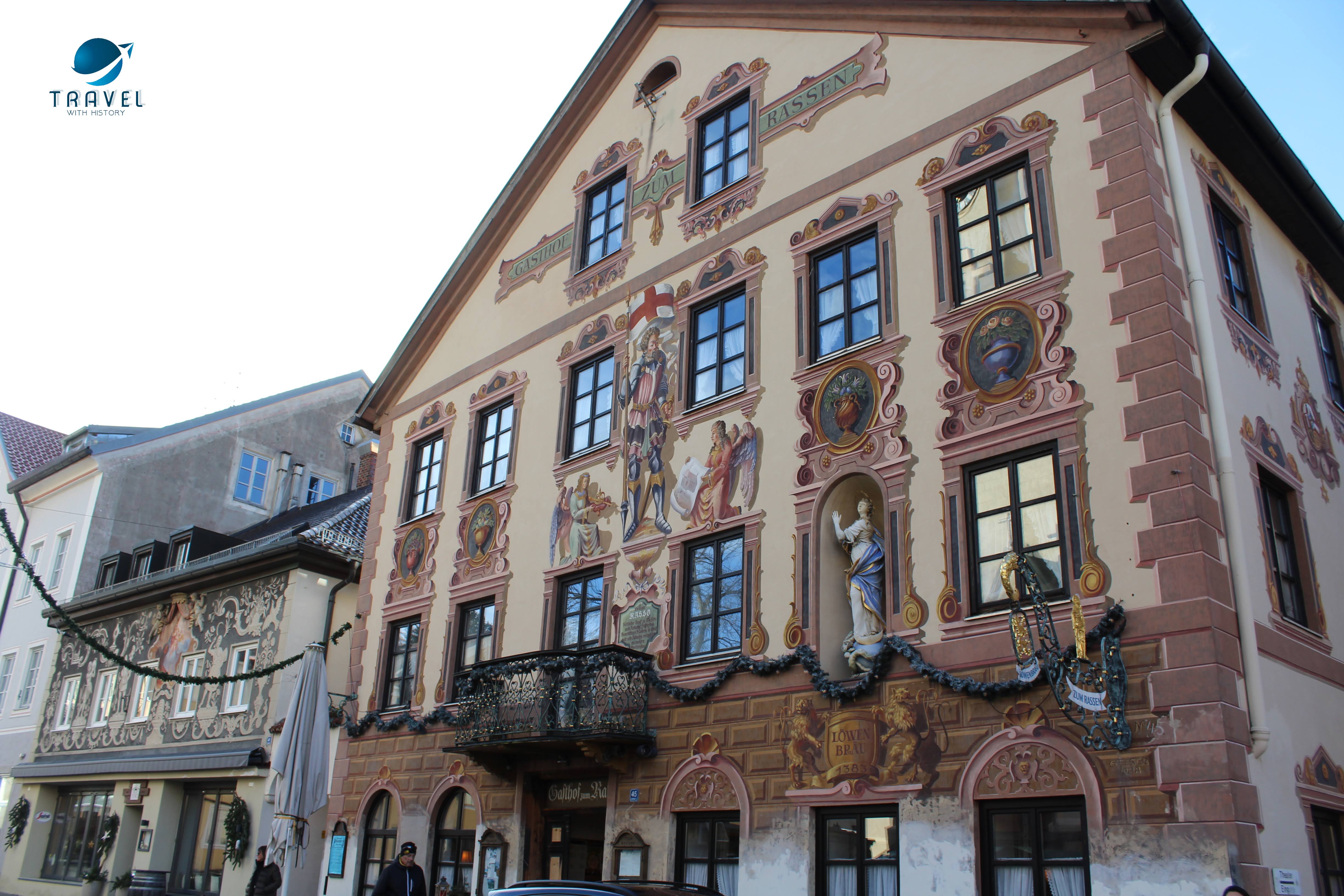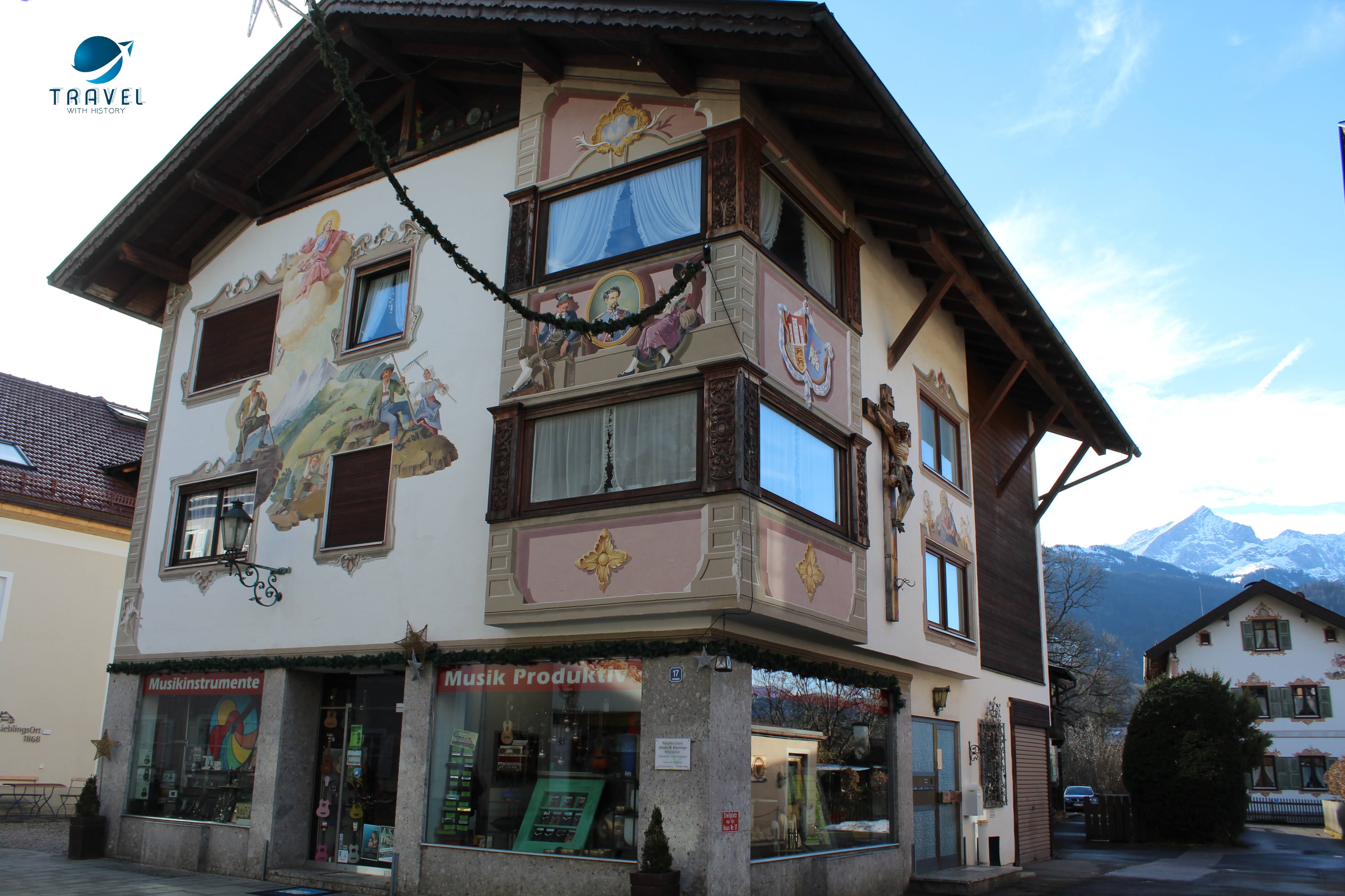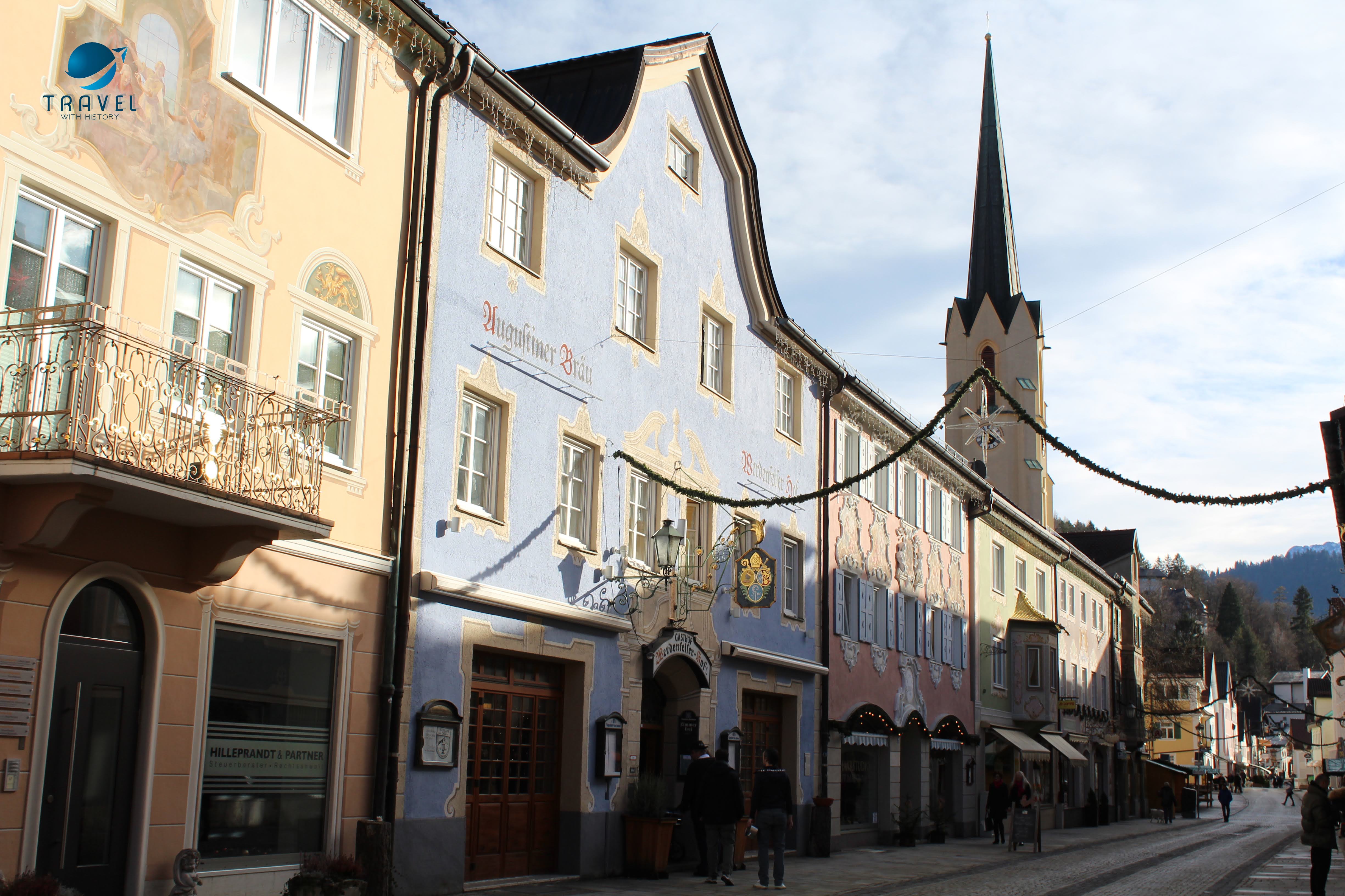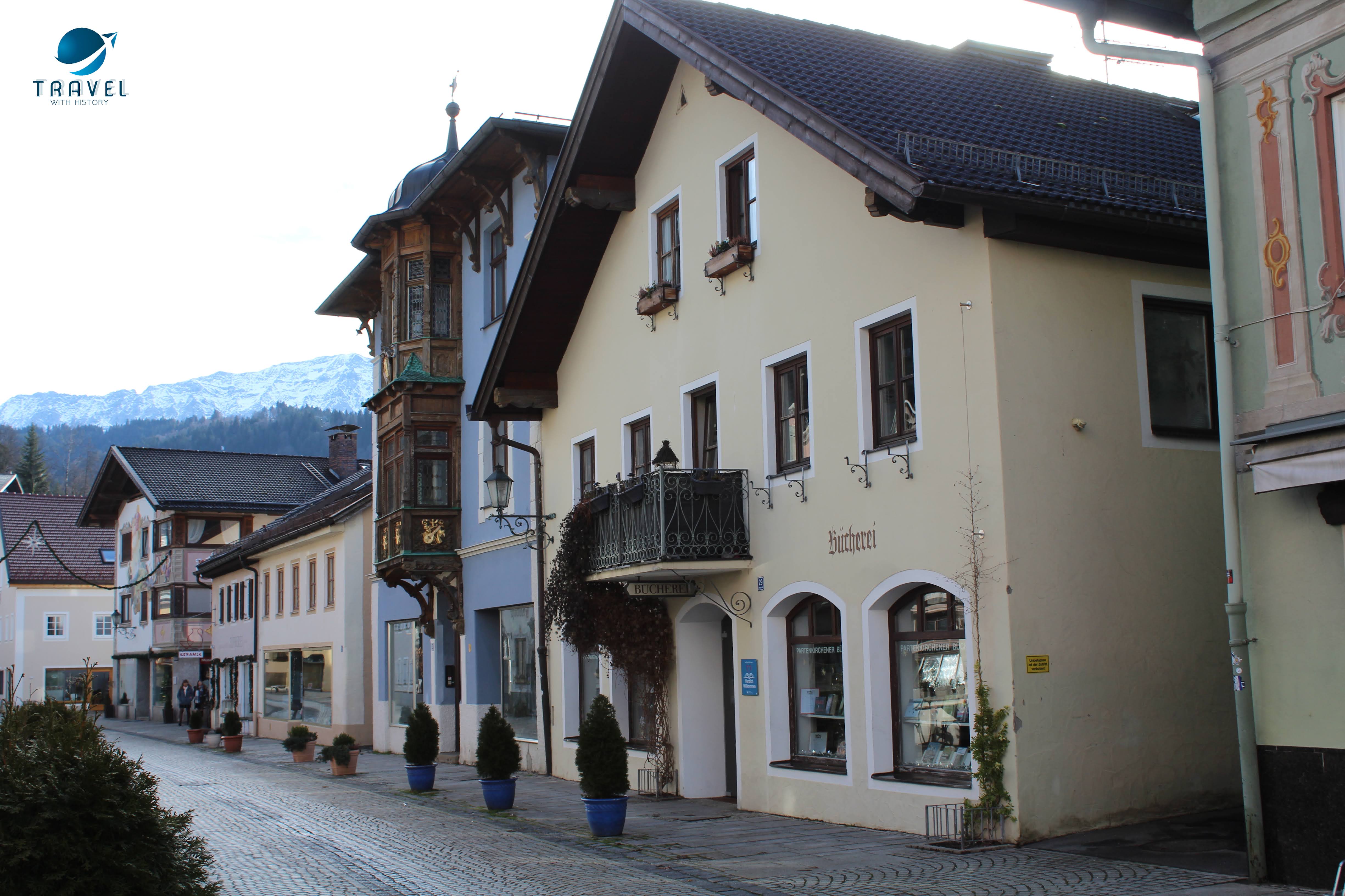 Старият град Партенкирхен изпълни всички наши немски фантазии. Живописните къщи показват стенописи по фасадите си, типични за района, които разказват интересни истории и съживяват миналото в контраст с модерните сгради на Гармиш, които видяхме първата вечер. Така наречените „Lüftlmalereien“ (дори не мога да го произнеса), са ранна баварска версия на уличното изкуство и всички сгради са пищно украсени с тях. Всяка е изобразена с някакво историческо или религиозно събитие или животни. Фасадната живопис произхожда от Италия, но цветните истории по стените на къщите се смятат за типичен израз на стария баварски характер. Популярен театър в рисувана форма, така да се каже. Опитайте се да „прочетете“ германската история на някои от изображенията.