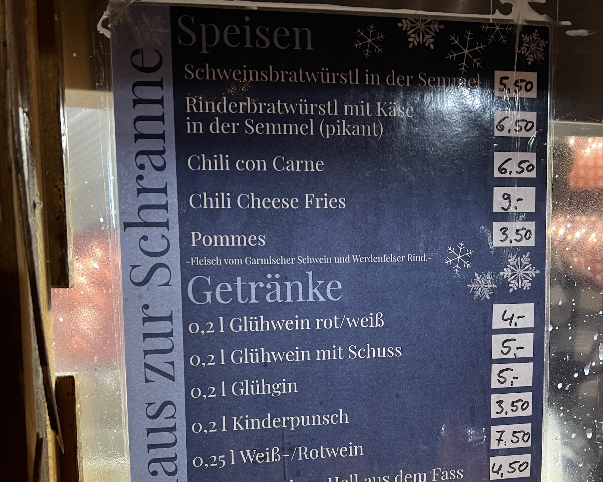 Като популярен ски курорт, Гармиш-Партенкирхен предлага голямо разнообразие от традиционни кулинарни изкушения. В историческият център има множество малки ресторанти, където може да “вкусите” баварски специалитети и то на много прилични цени, без туристически капани. Въпреки, че на Коледа много малко от тях работеха, се спряхме за обяд в Drei Mohren – един от традиционните хотели в Гармиш-Партенкирхен със съчетан алпийски чар и модерен комфорт. Чудесното му местоположение в историческия център също се вписва в това. И гостилницата му е с подчертан традиционен баварски стил не само в интериора, но и в менюто. Вече знаете, че държим и да вкусим района, който посещаваме, не само да се разходим в него.