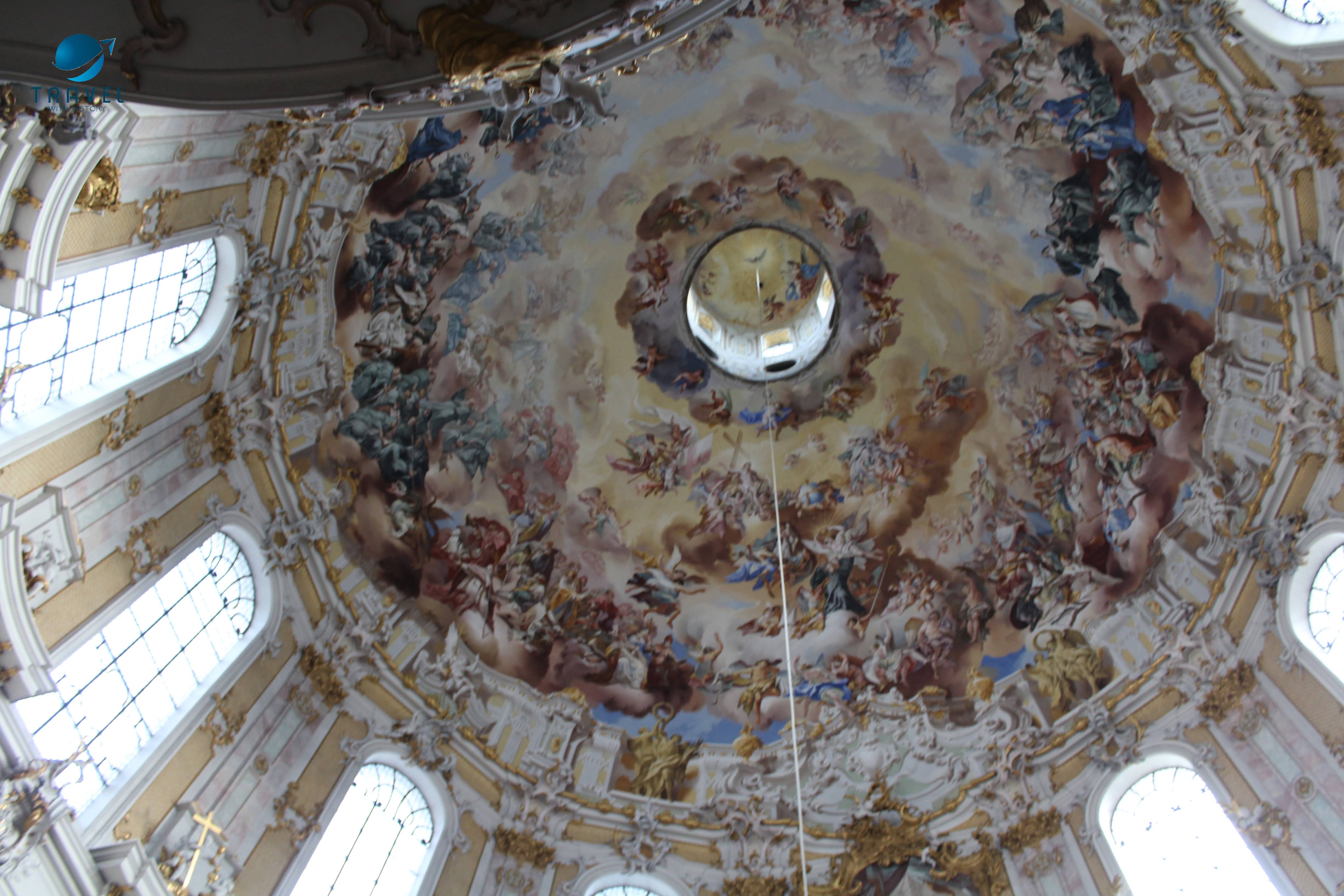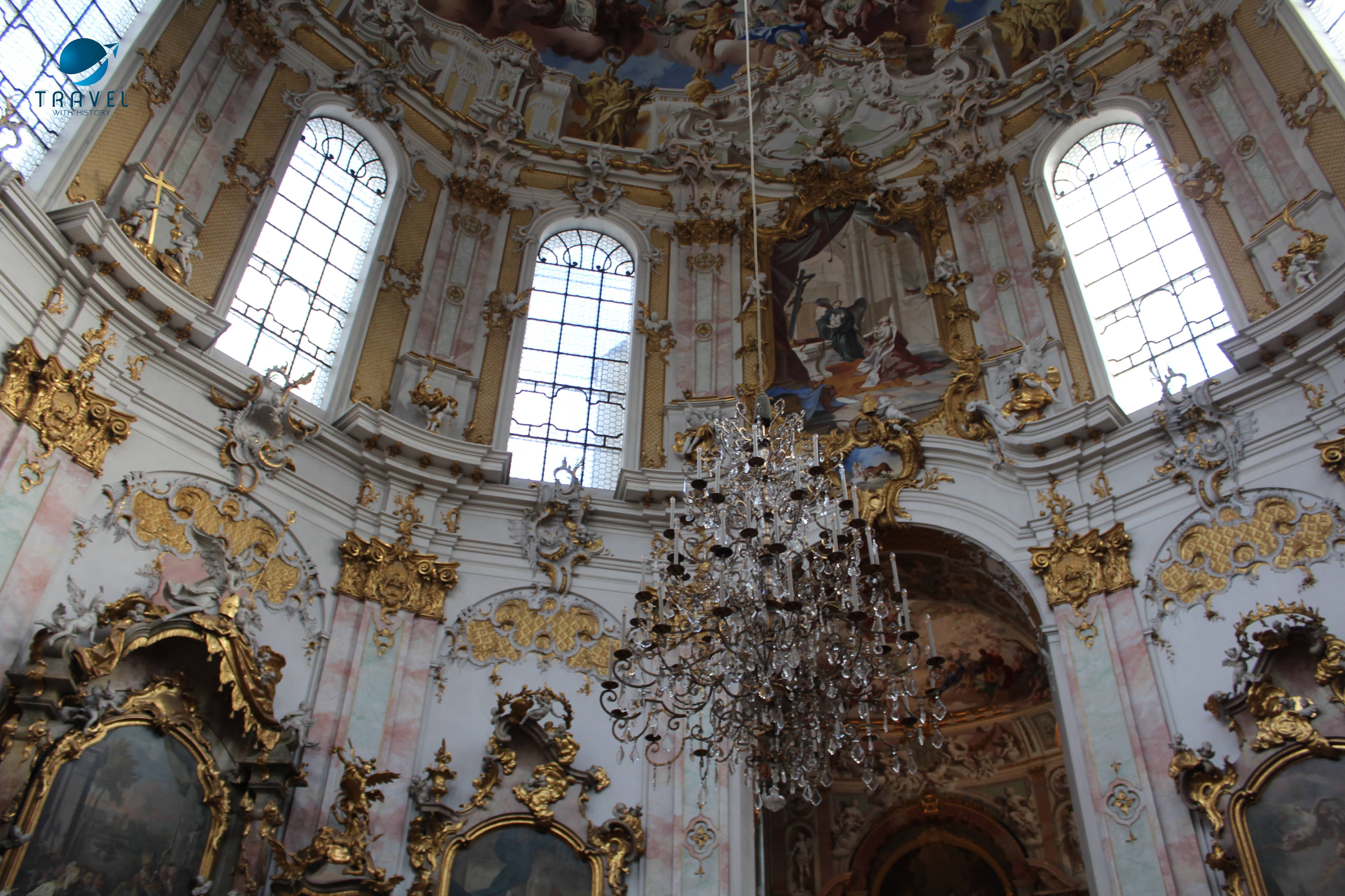 Абатството Етал е основано през 1330 г. от крал Лудвиг Баварски. Първоначално е бил готически бенедиктински манастир, но през XVII-ти век абатството е унищожено при пожар и възстановено в бароков стил с двоен купол. Отвън сградата е внушителна, красива и богато украсена, издигаща се драматично в баварската провинция на фона на скромните планински домове в района. Колкото и да бяхме впечатлени от крайпътната атракция отвън, вътрешността направо ни стъписа. Интериорът е абсолютно изумителен!