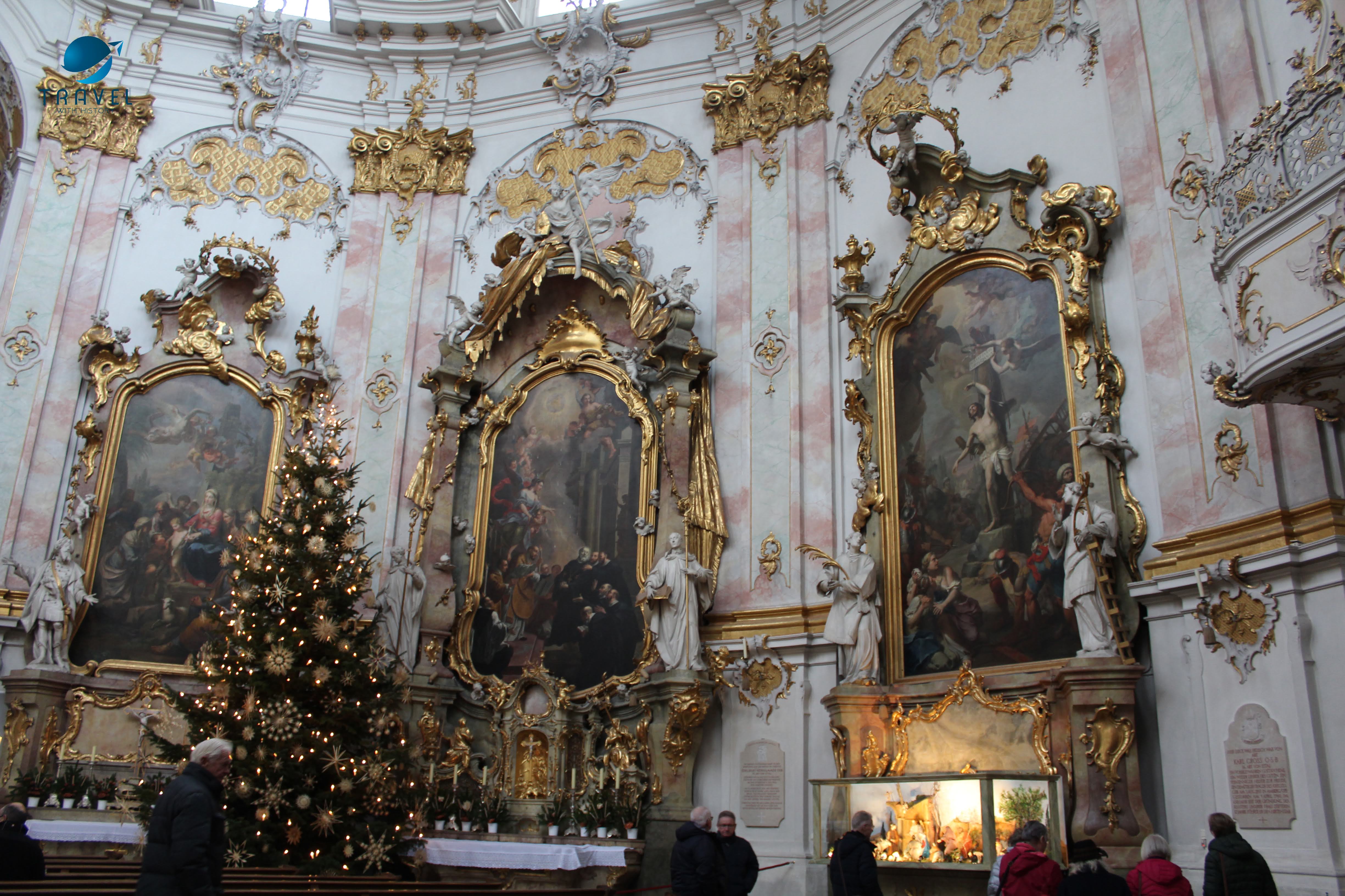 Дори и да не сте религиозни и да не разбирате нищо от изкуство, пред това място няма как да останете равнодушни. И ние не успяхме. Сложни мраморни скулптори украсени със златни елементи, дърворезбован олтар и огромен църковен орган са само малки елементи пред живописните стенописи в естествен размер. Толкова са детайлни, че ангелите сякаш всеки момент ще оживеят. Изкуството е вид проводник, чрез който хората отдават почит и сякаш се свързват с по-висши сили, а това място за поклонение направо крещи за съвършенство. В малкото време, което бяхме там се оглеждахме в захлас и загубихме ума и дума, преклонени пред красотата му. Това е едно от най-красивите абатства, които сме посещавали. За жалост след нас се изсипаха два автобуса с азиатски туристи и бързо ни върнаха в реалността.