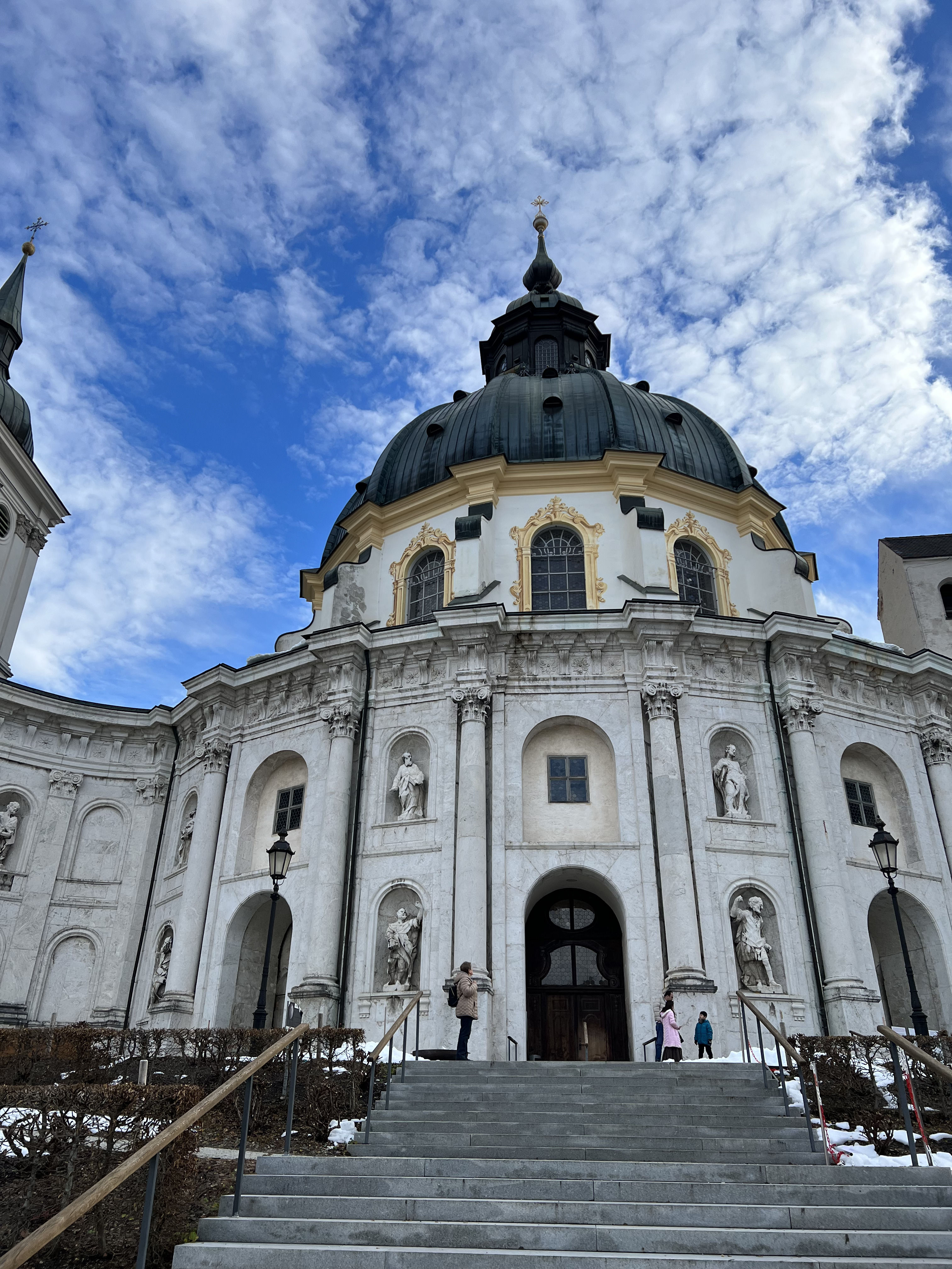 След краткото лирично отклонение да се върна на темата. Абатство Етал е една от основните атракции в този алпийски маршрут. Тази любима туристическа дестинация се намира на три километра от Оберамергау и съвсем близо до разклона за замъка Линдерхоф. До замъка не стигнахме, защото през зимата голяма част от градините са затворени, но това абатство е наистина величествено!