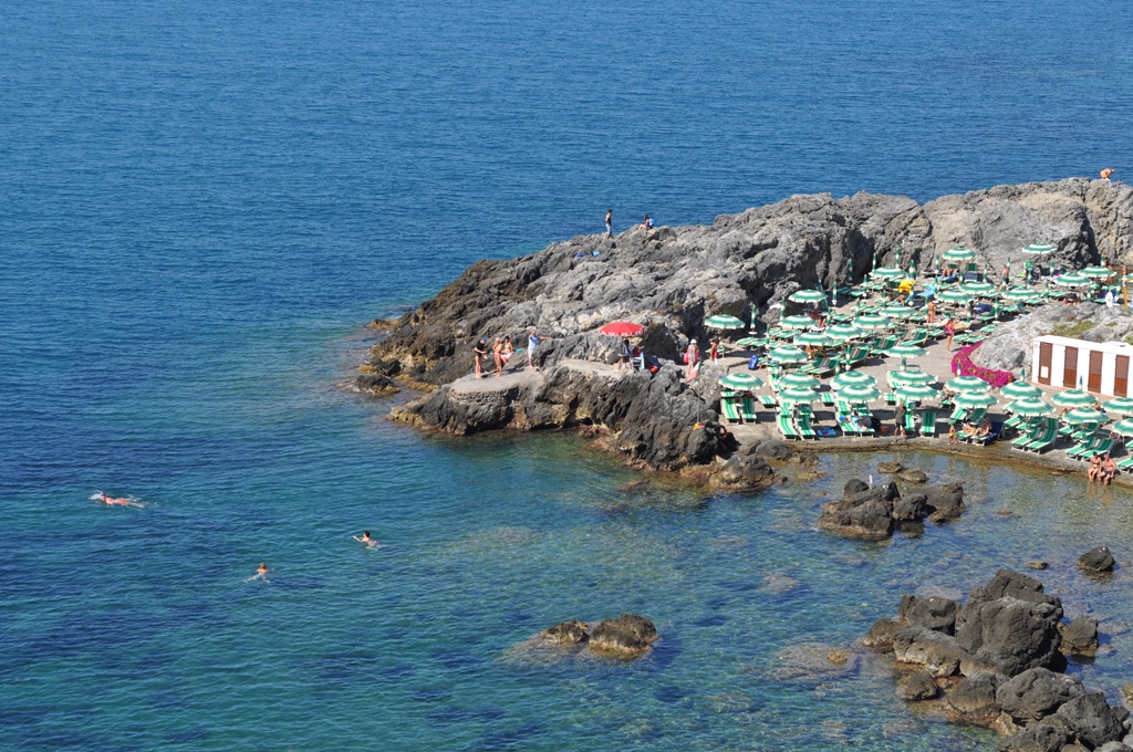 Това не е точно плаж, това е заведение с невероятна гледка! Ресторант/бар на място с много добри възможности за обяд, чадър и шезлонги за един ден струват € 40, докато половин ден (сутрин или следобед) струва € 28. Цени съобразени с малкото пространство и отлично обслужване. Едно незабравимо кътче над и под морето. Зашеметяващо местоположение на фона на прекрасен изглед към остров Джилио!