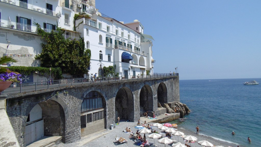 Плажът с камъчета под „вертикалния град“ на крайбрежието на Амалфи. Обявено за обект на световното наследство на ЮНЕСКО, крайбрежието на Амалфи включва град Позитано, който се изкачва шеметно нагоре по планинския склон. Цветните къщи правят този необикновен крайбрежен пейзаж още по-очарователен. Не е чудно, че мнозина са били спечелени от него, включително знаменитости като Мик Джагър и Кийт Ричардс, които са написали песен на Ролинг Стоунс тук. Слезте по стръмните пътеки до камъните на плажа Марина Гранде, където можете да се излежавате на слънце, да се потопите в спокойните сини води на морето или да се насладите на питие в някой от баровете, докато се любувате на невероятната гледка. Но, бъдете готови да платите € 30 – 35 за плажен стол … но си заслужава! Забравете пясъчните участъци в близост до морето – по-голямата част от плажовете са каменисти и носенето на кърпа просто няма да ви помогне.